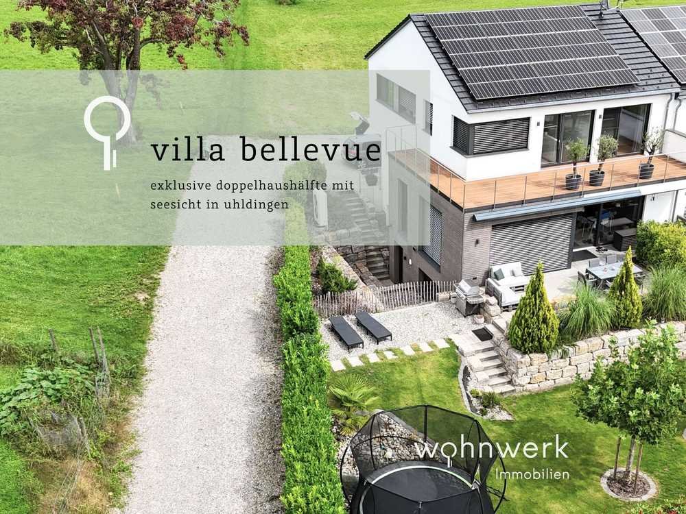 Willkommen in der Villa Bellevue, einer außergewöhnlichen Doppelhaushälfte in Bestlage von Uhldingen-Mühlhofen. Hier verbinden sich moderne Architektur, edle Materialien und eine unvergleichliche Lage mit 180°-Blick auf den Bodensee und die dahinterliegende Bergwelt.