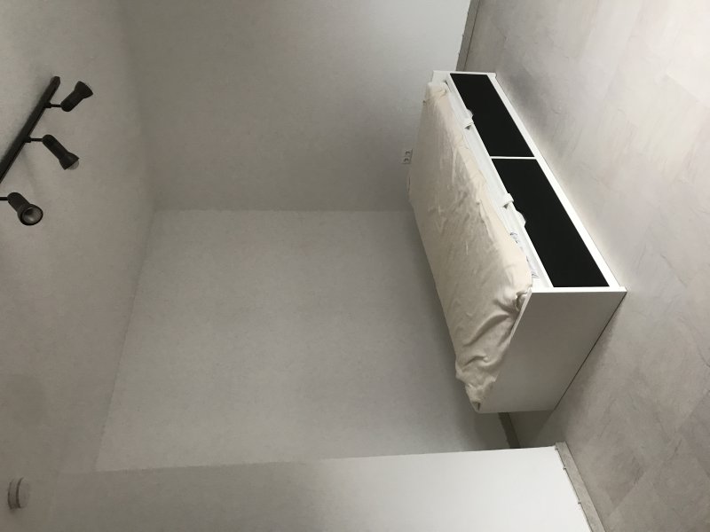 Der Wohn-Schlafbereich ist mit Laminatboden ausgelegt, die Küche Flur und Bad haben Bodenfliesen., Bad mit Dusche und Tageslicht.