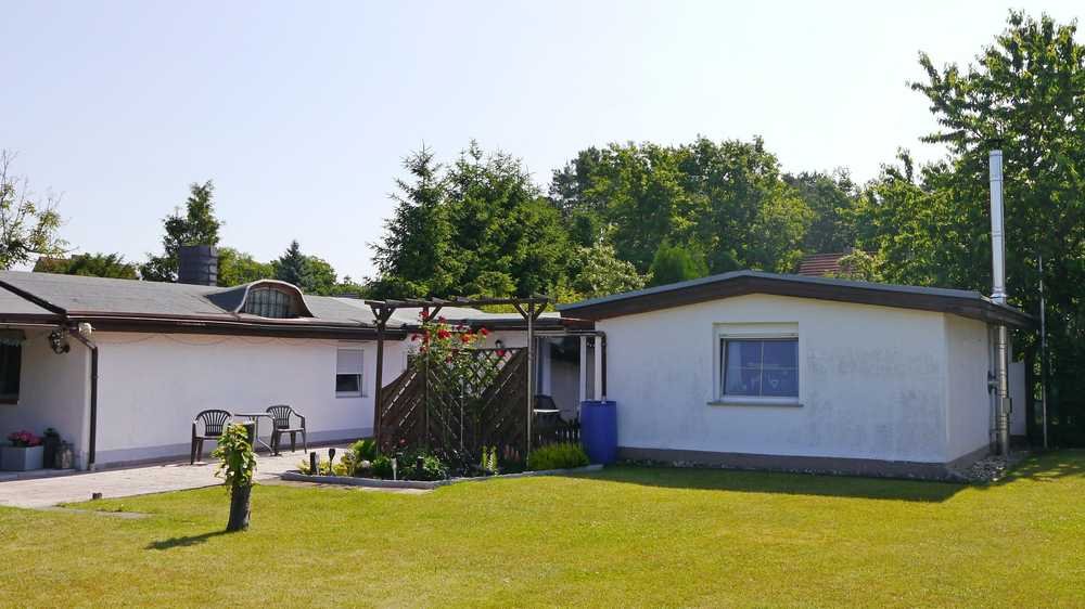 Ruhige Wohnimmobilie, ebenerdig im Bungalow-Stil. Im Jahr 1996 wurde das einst kleine Gartenhaus an und ausgebaut auf eine Wohnfläche von insgesamt ca. 81 m². Es entstanden in U-Form, 4 Zimmer, Küche und ein Bad mit Dusche und Wanne. Das Wohnzimmer verfügt über einen Kamin, alle weiteren Räume werden über Strom beheizt.