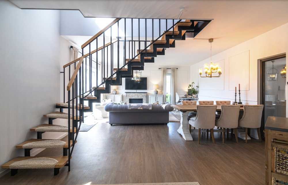 Die Maisonette-Wohnung erstreckt sich über zwei Etagen, die durch eine stilvolle offene Treppe verbunden sind. Auf jeder Etage finden Sie unterschiedliche Bereiche, die großzügiges Wohnen ermöglichen.