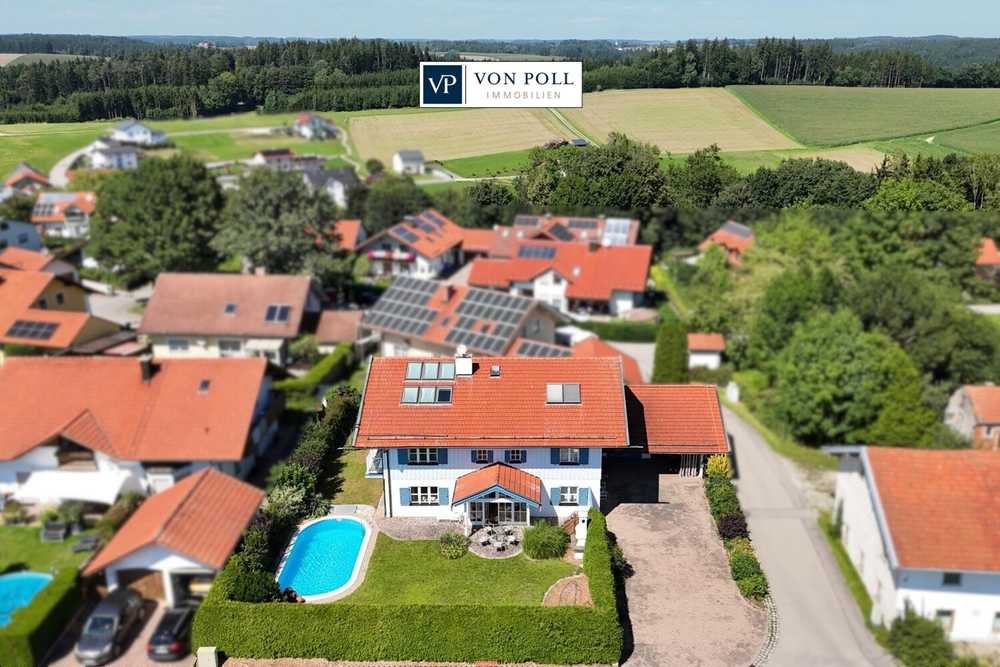 Ein Ort, an dem das Herz zur Ruhe kommt und der Alltag in den Hintergrund tritt – dieses freistehende Einfamilienhaus in Niederbergkirchen vereint auf einzigartige Weise ländliche Idylle mit gehobener Wohnqualität. Auf einem ca. 874 m² großen, gut geschnittenen Grundstück thront das ca. 1983/84 erbaute Landhaus mit einer Wohnfläche von etwa 273 m² – ein Zuhause, das nicht nur Raum bietet, sondern auch Atmosphäre und ein Gefühl von Geborgenheit.
