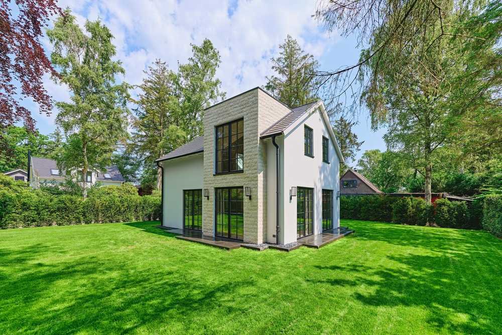Die Fassade mit glattem Putz und schwarzen dänischen Sprossenfenstern verleiht dem Haus einen eleganten, modernen Charakter, während das anthrazitfarbene Flachdach und die sichtbare Holzkonstruktion der Dachüberstände die hochwertige Bauweise unterstreichen. Ein Erker, kunstvoll in Naturstein eingefasst, macht dieses Haus zu einem echten Unikat.