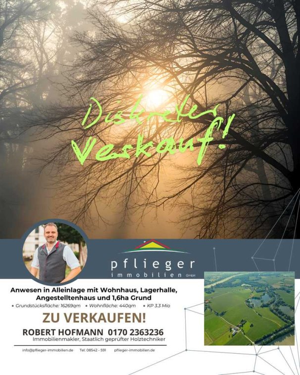 Anwesen in Alleinlage mit Wohnhaus, Lagerhalle, Angestelltenhaus und 1,6ha Grund