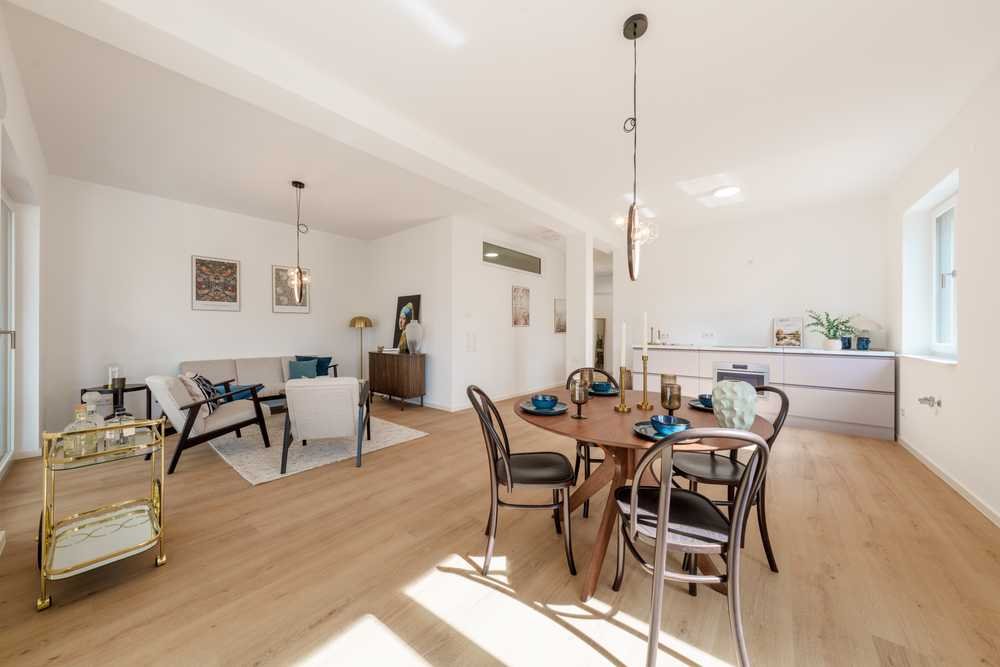 Diese 118 m² große Erdgeschosswohnung vereint modernen Wohnkomfort mit hoher Lebensqualität. Sie befindet sich in einem umfassend kernsanierten Mehrfamilienhaus, in dem alles erneuert wurde – von Heizung, Wasserleitungen und Elektrik bis hin zu Fenstern und Wärmedämmung. Dank energieeffizienter Luft-Wasser-Wärmepumpe, Fußbodenheizung und dreifach verglaster Fenster genießen Sie ein behagliches Raumklima bei geringen Energiekosten. Die barrierefreie Wohnung überzeugt durch ihre durchdachte Aufteilung, lichtdurchflutete Räume und ein modernes Badezimmer. Ein besonderes Highlight ist der ca. 60 m² große, private Gartenanteil – perfekt für entspannte Stunden im Freien. Abgerundet wird das Angebot durch eine Garage, zwei Außenstellplätze und einen eigenen Kellerraum. Ein ideales Zuhause für alle, die Wert auf Qualität, Komfort und Nachhaltigkeit legen.