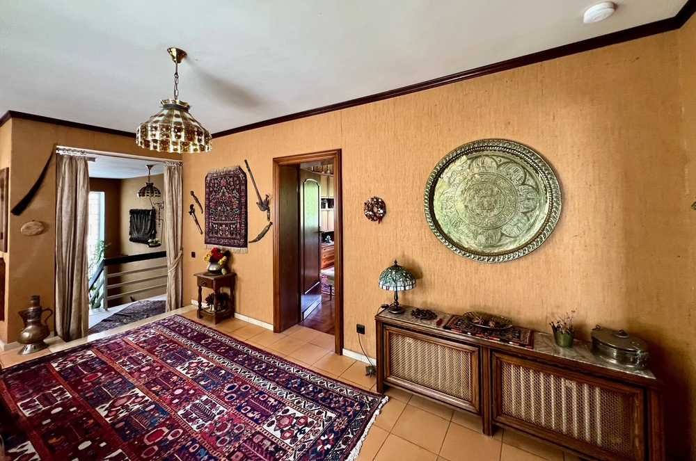 Freistehendes geräumiges EFH mit 6 Zimmern auf 2 Etagen, 2 Bädern, Gäste-WC, Sauna, Doppelgarage, Balkon, Terrasse, praktische Nebenräume, Waschküche und Weinkeller. Unverbaubarer Panoramablick über den großen gepflegten Garten und das ganze Lorsbachtal.