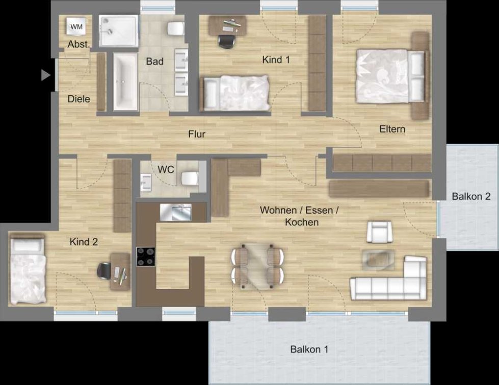 Alle Grundrisse sind so konzipiert ,dass sie optimal genutzt werden können. So entstehen helle, offene und einladende Wohnbereiche, die für hohe Wohnqualität sorgen. Jede Wohnung verfügt über ein eigenes Kellerabteil. Die große Tiefgarage löst das allgegenwärtige Parkplatzproblem, auf Wunsch auch mit einer Wallbox ausstattbar. Ob Wohnung mit Terrasse oder Balkon, ist letztendlich nur eine Geschmacksfrage, jede mit eigenem Freibereich.