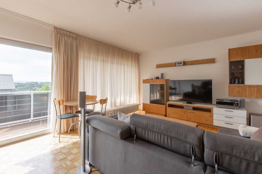 Das Herzstück der Wohnung ist das lichtdurchflutete Wohnzimmer mit hochwertigem Parkettboden. Von hier aus gelangen Sie auf den nach Südosten ausgerichteten Balkon, von dem sich ein weiter Blick in Richtung des Stiepeler Golfplatzes eröffnet. Der Wohnbereich bietet zudem ausreichend Platz für einen kleinen Ess- oder Arbeitsbereich.