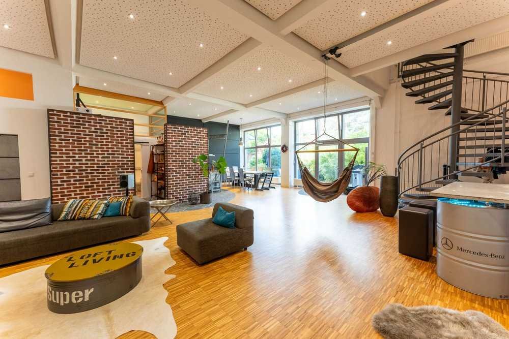 Erleben Sie dieses außergewöhnliche Loft in der ehemaligen Calwer Deckenfabrik, 2000 modernisiert, das industriellen Charme mit modernem urbanem Lifestyle auf rund 270 m² Wohnfläche auf unvergleichliche Weise verbindet. Über zwei Ebenen erstreckt sich ein offenes, lichtdurchflutetes Wohnkonzept, das Großzügigkeit, Stil und individuelle Entfaltungsmöglichkeiten perfekt vereint.