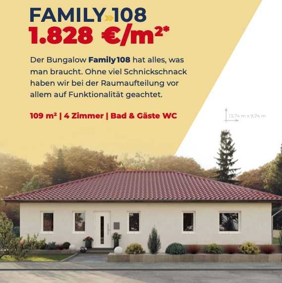 Der Kaufpreis beinhaltet den Grundstückskaufpreis und den Kaufpreis für den Bungalow „FAMILY108“ zzgl. Erschließungskosten.