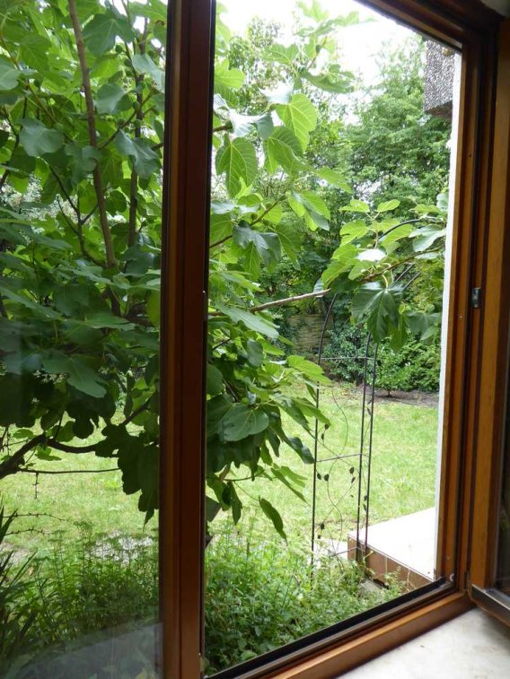 Die Wohnung im EG hat in allen Zimmern Laminatböden, in der Diele und den Naßräumen Fliesen. Die Küche ist bereits mit einer modernen Einbauküche ausgestattet. Im Bad gibt es 2 Waschbecken, die Badewanne und eine Dusche. Das WC ist separat. Diese Wohnung wurde 2018 teilsaniert. Von 3 Zimmern aus gelangt man auf die Terrasse, die dann in den Garten führt. Im Garten gibt es Platz zum Spielen, zum Anbau von Gemüse, Beeren, Blumen oder Stauden. Im Moment stehen dort ein Feigen- und ein Kirschbaum.