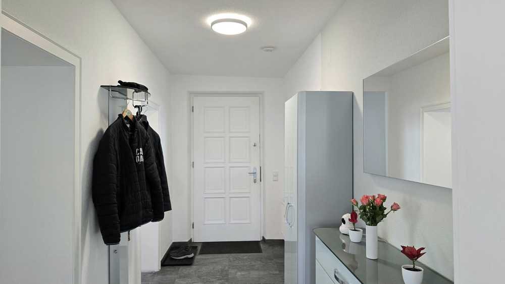 -Großer, heller Flur mit ausreichend Platz für Garderobe und Schrank.
