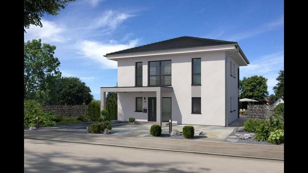 Der Hausentwurf bietet in der Architektur die moderne Interpretation einer 2-geschossigen Stadtvilla mit Walmdach. An der Gartenseite sind bodentiefe Fenster-