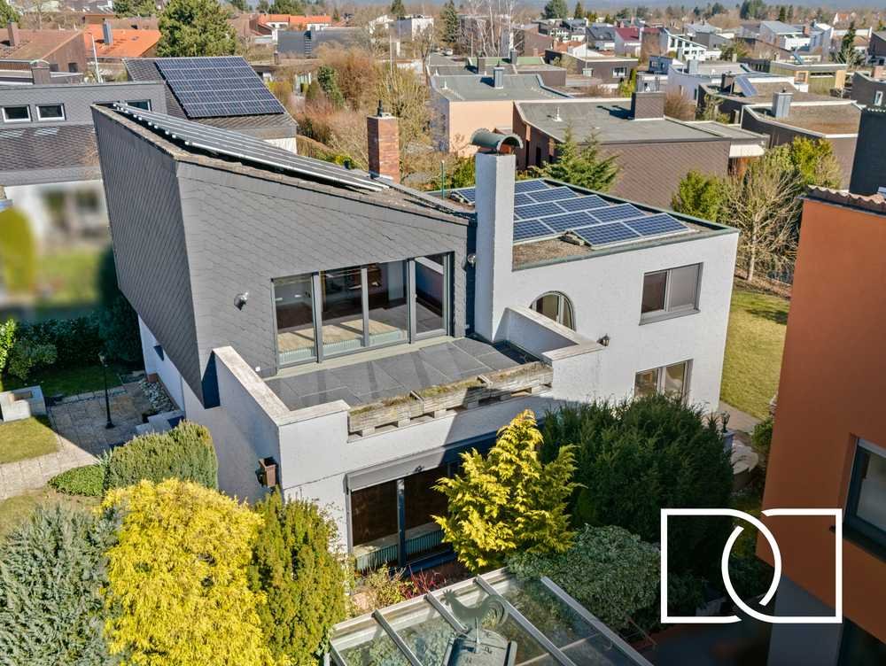 Auf fünf versetzt angelegten Etagen erstreckt sich die großzügige Wohnfläche von 242,19m² – ein durchdachtes Raumkonzept, das architektonisch begeistert und funktional überzeugt. Das Haus ist voll unterkellert und steht auf einem 674m² großen, liebevoll gestalteten Grundstück mit altem Baumbestand, neuer Rasenfläche samt Sprinkleranlage und einem Grillplatz im Eingangsbereich. Eine große, sonnenverwöhnte Südterrasse und die separate Dachterrasse runden das Angebot im Außenbereich ab. Die 8m tiefe Garage mit elektrischem Sektionaltor bietet Komfort und Stauraum, ein zusätzlicher Stellplatz davor sowie zahlreiche öffentliche Parkmöglichkeiten an der Straße sorgen für entspanntes Parken.