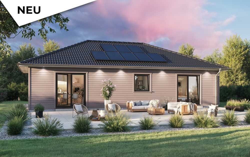 Des Weiteren gehören zum jeweiligen Wohnkonzept mit vielen bodentiefen Fenstern ein Schlafzimmer, ein bzw. eben zwei weitere Zimmer, ein Vollbad, ein Gäste-WC und ein Hauswirtschaftsraum. Unterschiedliche Nischenlösungen für Garderobe oder Stauraum unterscheiden ebenfalls noch einmal die Raumplanung in den Grundrissbeispielen. Wenn Sie Ihr Scanhaus mit einem Satteldach statt mit einem Walmdach gestalten und eine PV-Anlage installieren, sind sie nochmal besser für die Zukunft aufgestellt.