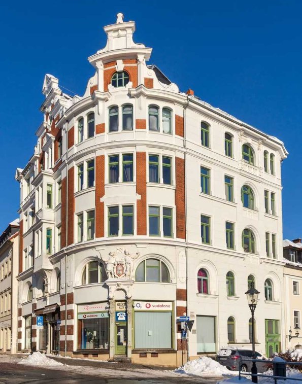 aufwändiger Fassadengestaltung, figuralem Schmuck, baugeschichtlich, künstlerisch und aus der Stadtentwicklungsperspektive bedeutend.