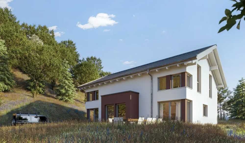 Moderne Architekturelemente wie Übereckverglasungen, Akzente in Holz und Farbe, Erker, Giebel, Balkone und Glasfassaden sind Design-Highlights, die ein designbewusstes Statement setzen. Unterschiedliche Dachformen, wie zum Beispiel ein Sattel- oder Walmdach, und Wohnraumerweiterungen sind weitere Designoptionen, mit denen das EVOLUTION 130 zum