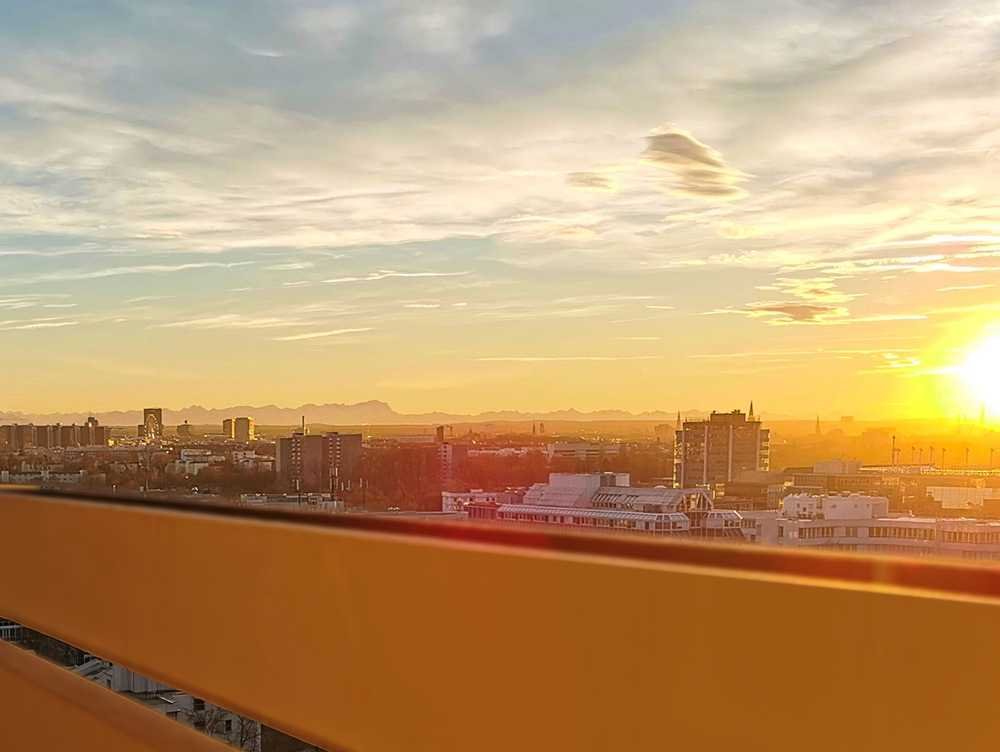 Ⓣraum-Aussicht vom Sky-Loft. Urban Wohnen über München nach Sanierung. Mit Pool & Sauna.
