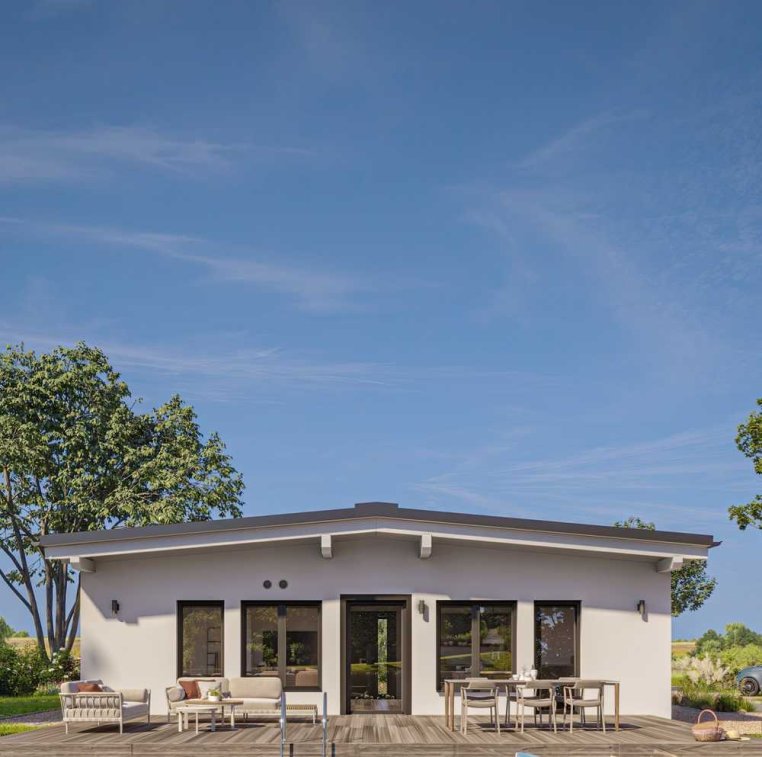 Der COMPACT 60 von Bien-Zenker ist ein moderner Bungalow, der sich perfekt für alle eignet, die auf einer Fläche von 59 m² kompakt, aber dennoch komfortabel leben möchten. Mit einem intelligent durchdachten Grundriss vereint dieses Haus Funktionalität und Wohnqualität auf einer Ebene. Der Bungalow bietet Ihnen zwei geräumige Schlafzimmer, ein stilvolles Badezimmer sowie einen multifunktionalen Raum, der als Büro oder Kinderzimmer genutzt werden kann. Die großzügigen Gemeinschaftsräume mit direktem Zugang zur Terrasse sind lichtdurchflutet und laden zum Verweilen ein. Dank der klaren Architektur mit flach geneigtem Satteldach und großen Fensterflächen entsteht ein offenes und freundliches Wohnambiente.