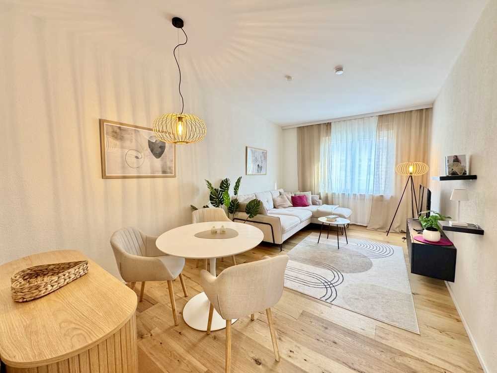 Die Wohnung ist geschmackvoll und vollständig eingerichtet. Eine hochwertige Einbauküche, ein neues helles Badezimmer mit Waschmaschine, ein gemütliches Wohnzimmer mit Essbereich und ein einladendes Schlafzimmer mit komfortablem Polsterbett schaffen eine wohnliche Atmosphäre. Alle Möbel sind farblich aufeinander abgestimmt und können bei Interesse übernommen werden, sodass eine sofortige Nutzung möglich ist.
