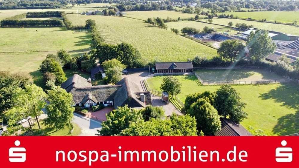 In mittelbarer Nähe zur Nordsee und damit dem UNESCO Weltnaturerbe Wattenmeer sowie der Kreisstadt Husum liegt dieses Reetdachanwesen auf einem ca. 3,38 ha großen, arrondierten Areal und damit mitten in Nordfriesland.