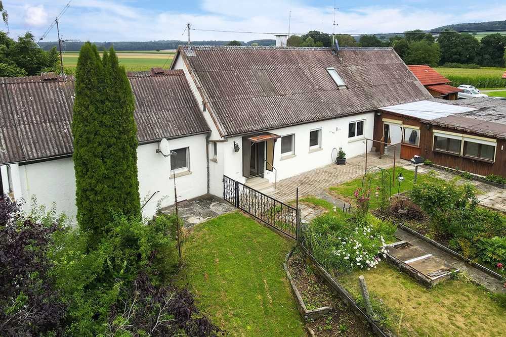 Dieses besondere Anwesen besticht durch seine idyllische und etwas versteckte Lage direkt am Ortsrand. Das großzügige Wohnhaus bietet eine Vielfalt an Nutzungsmöglichkeiten. Aktuell besteht die Immobilie aus zwei sep. Wohneinheiten, die sich bei Bedarf problemlos zu einem großen Ganzen verbinden lassen. Im DG wurden bereits ein Teil ausgebaut, zusätzlich steht hier noch eine großzügige Fläche zur Verfügung, die Sie ganz nach Ihren Bedürfnissen nutzen können. Der weitläufige Gartenbereich direkt vor dem Haus ist ein Paradies für Hobbygärtner und Familien mit Kindern, die hier jede Menge Platz zum Spielen und Entspannen finden. Ein absolutes Unikat stellt der beeindruckende Gewölbekeller unter dem Haus dar - der ehemalige Eiskeller einer Brauerei. Hier herrschen ideale Bedingungen für die Lagerung von Obst, Gemüse oder edlen Weinen.