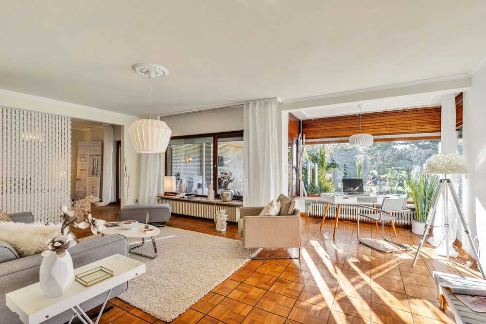 Die Immobilie bietet eine großzügige Wohnfläche von 294,49 m², verteilt auf 10 ½ Zimmer und 4 Badezimmer. Teilweise verfügt das Haus über circa 3,10 m hohe Decken, die ein besonders großzügiges Raumgefühl vermitteln. Eine Einbauküche sowie ein gemütlicher Kamin im Innenbereich und ein Außenkamin auf der Terrasse sorgen für besonderen Wohnkomfort. Das Haus ist teilunterkellert und eignet sich dank seiner Aufteilung ideal als Mehrgenerationenhaus mit mehreren Wohneinheiten. Für zusätzlichen Komfort sorgen elektrische Markisen und Rollläden.