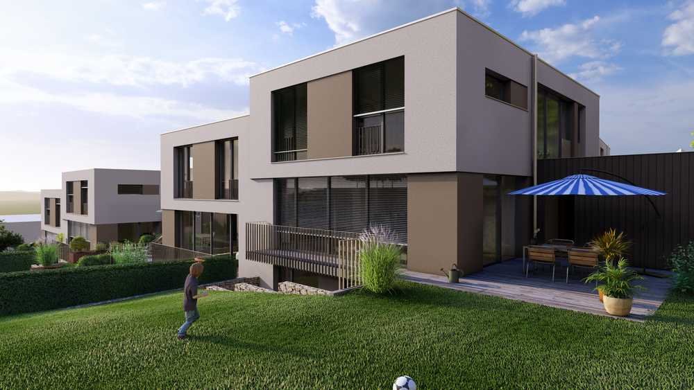 In dieser modernen Doppelhaushälfte mit Doppelgarage können Sie sich bequem einrichten. Aufgrund der leichten Hanglage ist Wohnen auf zwei bis drei Geschossen möglich. Das Erd- und Obergeschoss ist praktisch geplant für eine 4-köpfige Familie: Im Erdgeschoss genießen Sie den modernen und lichtdurchfluteten Wohnbereich mit großzügigen, raumhohen Verglasungen, das Obergeschoss bietet Ihnen zwei geräumige Kinderzimmer, ein tolles Familienbad und ein Schlafzimmer mit Ankleide. Im ausgebauten Hanggeschoss entstehen zwei weitere Zimmer - ideal für die große Familie, als Homeoffice, fürs Au-Pair oder als Wellnessbereich... Die Möglichkeiten sind zahlreich. Architektur ist unsere Leidenschaft - gerne passen wir das Raumprogramm an Ihre Bedürfnisse an. Ihre Fahrzeuge parken Sie bequem in der Doppelgarage direkt am Haus.