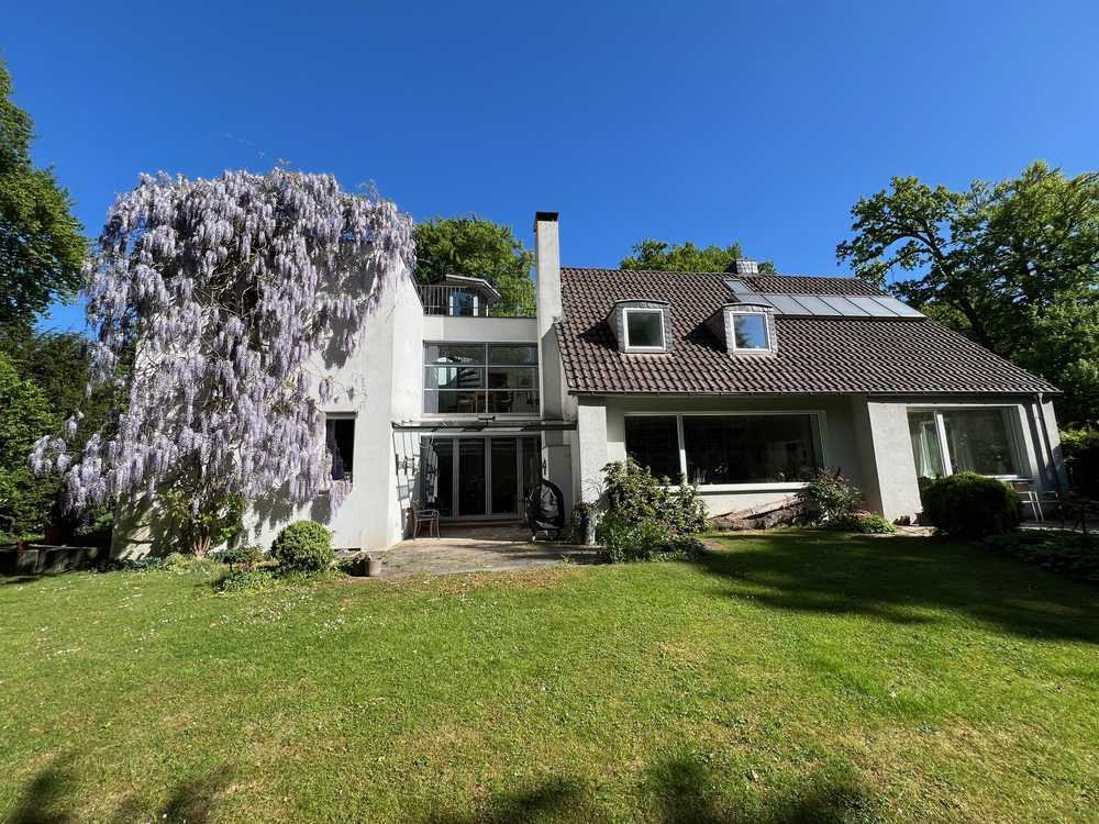Das ursprüngliche Haus aus den fünfziger Jahren ist konventionell und hochwertig gebaut, das Wohn- und Eßzimmer durch eine Schiebetür trennbar, mit gutem und gepflegten Parkett ausgestattet. Durch große Fenster, die 2007 erneuert wurden, genießen Sie einen herrlichen Blick in den Garten, der auch aufgrund seines traumhaften Baumbestandes einer Parkanlage nahekommt.