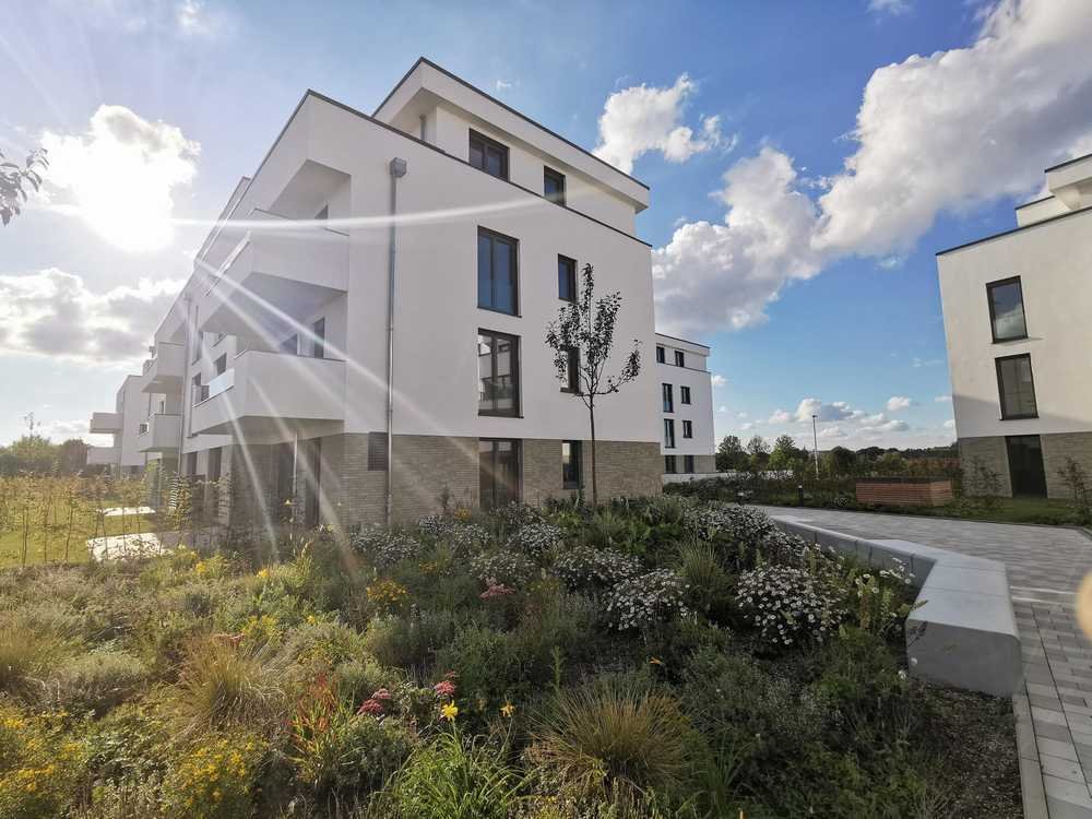 Die insgesamt 59 bezugsfertigen Wohneinheiten wurden hochwertig und energieeffizient in KfW-55-Bauweise errichtet und u.a. mit Aufzug, überwiegend bodentiefen Fensterelementen, Fußbodenheizung, Balkonen bzw. Terrassen oder Dachterrassen ausgestattet. Zusätzlich verfügt jede Wohnung über einen eigenen Kellerraum. Eine gemeinsame Tiefgarage mit 79 Einstellplätzen rundet dieses tolle Angebot ab.