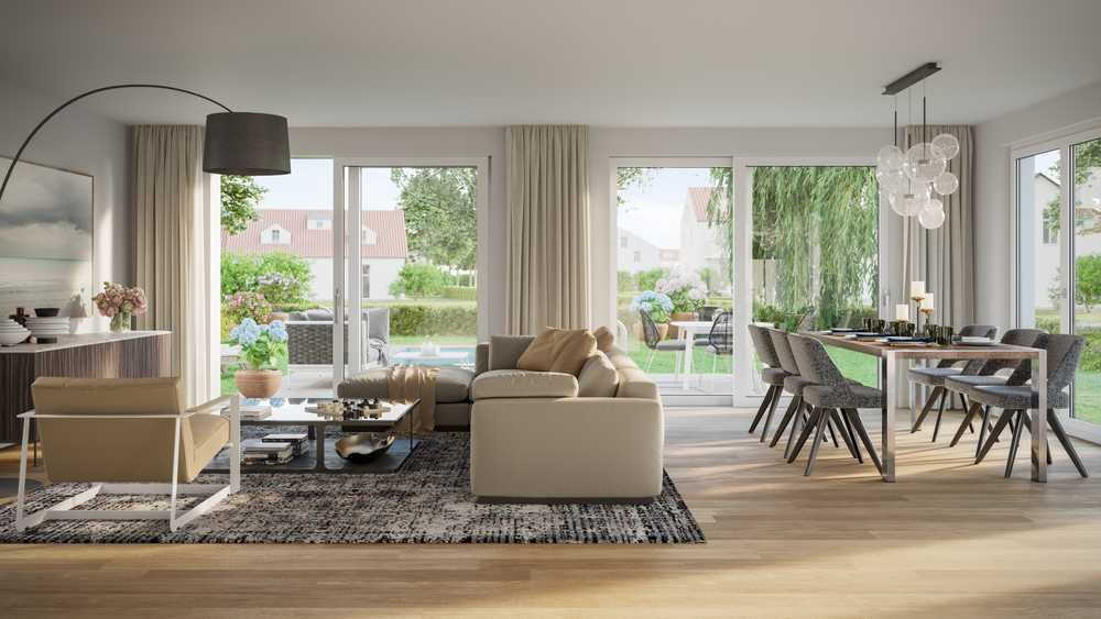 Große Fenster und helle Räume schaffen eine Atmosphäre von Offenheit und Weite. Der weitläufige Wohn- und Essbereich bildet das Herzstück des Zuhauses – perfekt für gemeinsame Abende, entspannte Stunden und inspirierende Gespräche.