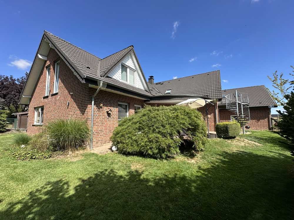Ideal für die große Familie ist dieses repräsentative und noch junge Einfamilienhaus mit Einliegerwohnung in beliebter Lage von Hüllhorst, im Stadtteil Oberbauerschaft. Das Wohnhaus mit Vollkeller aus dem Jahr 1986 wurde 1998 um einen großzügigen, massiv gebauten Anbau mit ca. 120 m² Wohnfläche, sowie einer großzügigen, ebenfalls in Massivbauweise erstellten Doppelgarage sinnvoll erweitert und umfasst heute eine gesamte Wohnfläche von 292 m². Im Zuge des Anbaus wurde 1998 das gesamte Haus (Altbau + Neubau) inkl. der Garage einheitlich verklinkert, gedämmt und neu eingedeckt. Das Erdgeschoss umfasst ein großes Wohnzimmer mit Kaminofen und Zugang zur Terrasse und dem ideal nach Süd-Westen ausgerichteten Garten, eine Küche mit Einbauküche, ein modernisiertes Tageslichtbad mit Dusche und Badewanne, sowie 4 Schlafzimmer. Der ca. 60 m² große Elternbereich im Obergeschoss beinhaltet ein großzügiges Schlafzimmer mit bodentiefen Fensterelementen, ein Tageslichtbad, sowie ein Ankleidebereich. Die Einliegerwohnung besteht aus einem Wohnbereich, einem Tageslichtbad zzgl. Gäste-WC, einer Küche mit Einbauküche, sowie aus 2 Schlafzimmern. Eine vorgelagerte Dachterrasse mit Süd-Ausrichtung und Zugang zum Garten bietet dabei selbst der Einliegerwohnung maximalen Komfort. Ein Partyraum/Büro mit Gäste-WC über der Garage rundet das außergewöhnliche Platzangebot ab. Gas-Zentralheizung mit Fußbodenheizung. 2-fach verglaste-Kunststoff-Isolierglasfenster. Betondecken. Beheizbare Garage mit direktem Zugang zum Haus und zum Garten. Doppelcarport. Glasfaseranschluss im Haus. Sauna. Außenbeleuchtung. 4 Terrassen zzgl. Dachterrasse. Energieeffizienzklasse D. Das ca. 1.012 m² große Grundstück grenzt an einen Bachlauf, ist ideal nach Süd-Westen ausgerichtet und befindet sich in beliebter Lage von Hüllhorst, im Ortsteil Oberbauerschaft. Kindergarten und Grundschule sind fußläufig zu erreichen. Die nächsten Einkaufsmöglichkeiten finden Sie wahlweise in Stift Quernheim, Bünde-Dünne oder Hüllhorst, dessen Zentren sich weniger als 10 Minuten entfernt befinden. Das Grundstück ist kameraüberwacht und befindet sich am Ende einer Sackgasse. Um Diskretion wird ausdrücklich gebeten. Keine zusätzliche Provision!