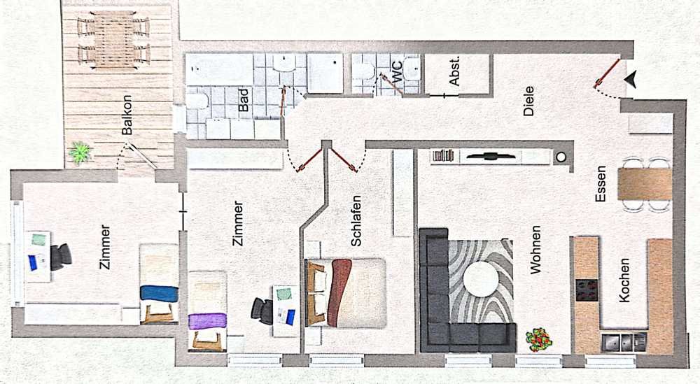 Besonderheit das dritte Zimmer kann als Büro genützt werden da es separaten Eingang über Balkon hat.
