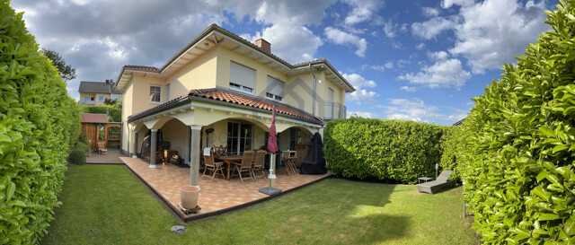 Dieses exklusive Einfamilienhaus aus dem Jahr 2006 bietet auf drei Etagen ein stilvolles Zuhause für die ganze Familie. Insgesamt stehen Ihnen sechs helle Zimmer zur Verfügung, davon vier komfortable Schlafzimmer – ideal für Familien mit Platzbedarf oder für die Verbindung von Wohnen und Arbeiten unter einem Dach.