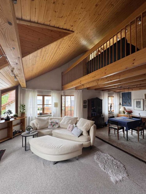 Die Maisonettewohnung erstreckt sich über das Dachgeschoss und den ausgebauten Dachspitz eines gepflegten 6-Familienhauses. Der außergewöhnliche Grundriss besticht durch einen offenen und lichtdurchfluteten Wohn- und Essbereich, der teilweise eine Raumhöhe bis in den Dachfirst bietet. Die Empore im Dachspitz eröffnet vielfältige Nutzungsmöglichkeiten, sei es als Homeoffice, Gästezimmer oder zusätzliches Schlafzimmer.