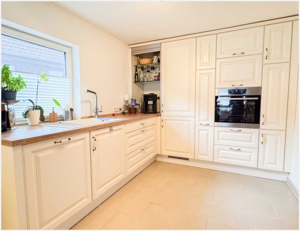 Im Erdgeschoss gelangen Sie über einen kleinen Flur in die offene Küche, die mit einer tollen Einbauküche (ca. 2 Jahre alt) ausgestattet ist. Von hier aus geht es nahtlos in den gemütlichen Wohn- und Essbereich mit Pelletofen. Abgerundet wird diese Etage mit einem modernen Gästebad mit Dusche und WC.