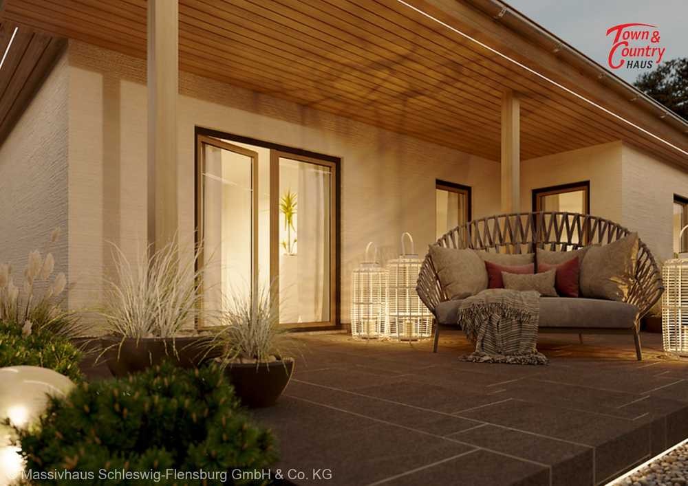 Unser Tipp: Wie bei allen Bungalows von Town & Country Haus können Sie sich mit dem Komfort Paket auch im Alter höchste Wohn- und Lebensqualität sichern. Das durchdachte Konzept beginnt schon an der Eingangstür – niedrige Schwellen minimieren Barrieren im ganzen Haus. Eine bodentiefe Dusche und ein höhenverstellbares Wand-WC bieten höchsten Komfort im Badezimmer. Vergrößerte Innentüren erleichtern den Durchgang.