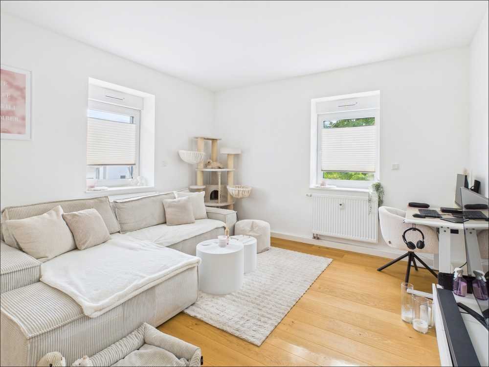 Die Wohnung verfügt über eine Wohnfläche von etwa 59,63 m² und besticht durch einen großzügigen und funktionalen Grundriss, der viel Raum für individuelle Gestaltung bietet. Der offen gestaltete Wohn- und Küchenbereich bildet das Herzstück der Wohnung. Er bietet nicht nur ausreichend Platz zum Wohnen und Kochen, sondern auch direkten Zugang zu zwei Balkonen. Diese erweitern den Wohnraum ins Freie und laden zu entspannten Stunden ein. Das Schlafzimmer ist ideal geschnitten und bietet eine angenehme Rückzugsmöglichkeit in ruhiger Atmosphäre. Ein modernes Badezimmer mit zeitgemäßer Ausstattung rundet das Wohnangebot ab. Insgesamt vereint die Wohnung komfortables Wohnen mit durchdachter Raumaufteilung sowie zwei attraktiven Außenbereichen.