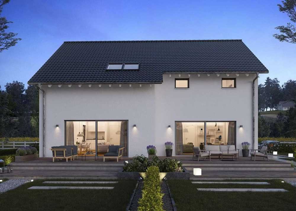 Fantastisch, was unser Mehrgenerationenhaus an Wohnfläche bietet: Hier werden gleich zwei Familien glücklich! Und das auf zwei Ebenen: Das Erdgeschoss wird mit Küche, Wohn- und Esszimmer zum jeweiligen Lebensmittelpunkt der Bewohner, während das Obergeschoss den Privaträumen und ihrer kreativen Ausgestaltung vorbehalten bleibt.