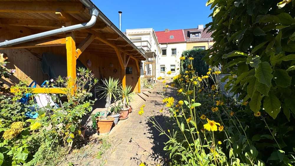 Das 1924 erbaute Haus überzeugt durch seine solide Klinkerfassade, einen gepflegten und pflegeleichten Garten mit praktischem Hof, Nebengelass und gemütlicher überdachter Sitzecke. Eine Garage sowie der praktische Zugang von der Gartenseite runden die Außenbereiche ab.