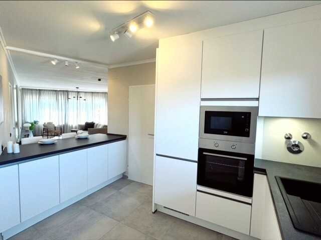 • Offene Küche mit neuer, maßgefertigter Einbauküche, modernen Elektrogeräten und einem eleganten Tresen, ideal für den Morgenkaffee oder ein Glas Wein am Abend