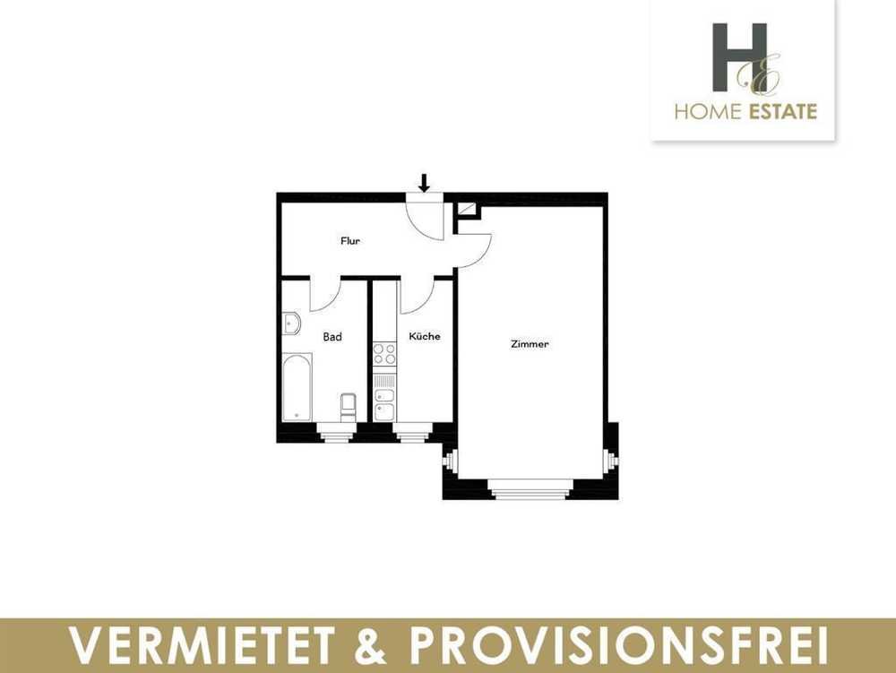 Über den Flur der exquisiten 1 Zimmer-Wohnung betreten Sie das Wohnzimmer, die Küche und das Bad mit Fenster und Wanne.