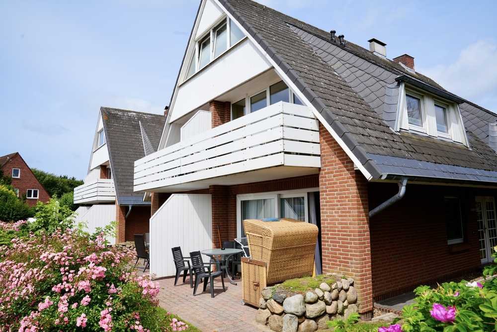 In diesem Haus stehen zwei Wohnungen zum Verkauf. Sie befinden sich in einem Doppelhaus in ruhiger, zentrums- und strandnaher Lage im Süden Westerlands. Zur kleinen Eigentümergemeinschaft zählen 4 Doppelhäuser. Das gepflegte Grundstück ist zum Teil von einem Friesenwall umgeben und mit Sylt-Rosen bepflanzt. Das Südwäldchen und der nächste Strandübergang - und damit die Nordsee und der kilometerlange Sandstrand - liegen quasi um die Ecke.