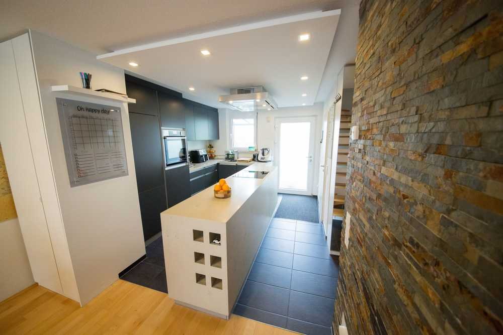 Auf vier Ebenen erwartet Sie ausreichend Platz für Familie, Hobbys und Beruf. Genießen Sie die Sonne im Südgarten mit liebevoll angelegter Terrasse und Grillkamin. Die Verbreiterung der Brücke über dem Kellerschacht schafft ein großzügigeres Gartenerlebnis – und das ganz ohne Einschränkung des lichtdurchfluteten Kellerzimmers. Oder sonnen Sie sich auf der geräumigen und ruhigen Dachterrasse. Die beiden elektrisch betriebenen Markisen (jeweils bis zu 3,50m ausfahrbar) sind im Preis inkludiert.