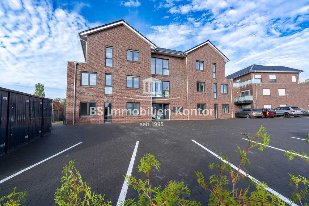 Dieser Neubau im Herzen von Esterwegen wird Sie begeistern! Die Neubau-Obergeschoss Wohnung wurde 2024/25 schlüsselfertig in ansprechender, moderner Architektur in konventioneller Massivbauweise errichtet. Auf einem großzügigen Grundstück präsentiert sich dieses Mehrfamilienhaus mit insgesamt acht barrierefreien, hochwertigen Wohnungen für Jung und Alt. Die ansprechende Architektur und das durchdachte Raumkonzept bieten Wohnkomfort auf höchstem Niveau in zentraler Lage. Sämtliche Geschäfte für den täglichen Bedarf sowie Apotheken, Bildungseinrichtungen, Bäcker, Ärzte können Sie bequem zu Fuß erreichen. Die OG-Wohnung überzeugt mit einem gelungenen Raumkonzept, einer Terrasse und einer gehobenen Ausstattung. Lassen Sie sich vom lichtdurchfluteten, offenen Wohn-/Essbereich und der hochwertigen Bauausführung überzeugen. Beheizt wird das Objekt durch eine Luft-Wärmepumpe. Die Kunststofffenster sind Dreifachverglast und mit elektrischen Jalousien ausgestattet.