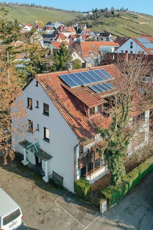 Das Haupthaus (Baujahr 1960) verfügt im Erdgeschoss über eine großzügige Praxis- Gewerbefläche (ca. 142 m²), die sich ideal für Freiberufler oder Gewerbetreibende eignet, sowie darüberliegenden Wohnraum mit rund 245 m². Neben einem Kamin, Balkon und zwei Bädern bietet das Haus auch einen Wellnessbereich und Partykeller.
