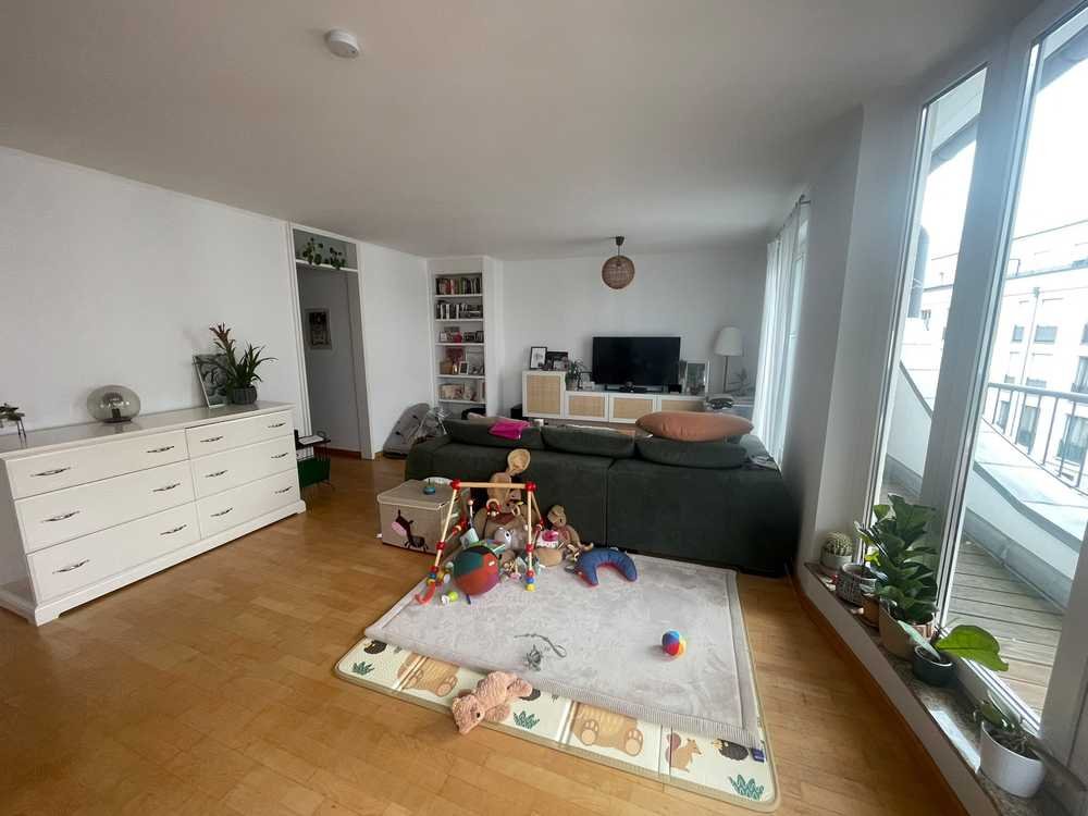 Diese lichtdurchflutete 3,5-Zimmer-Wohnung im 2. Obergeschoss eines gepflegten Siebenparteienhauses vereint modernen Wohnkomfort mit ruhiger, naturnaher Lage. Auf großzügigen ca. 110 m² Wohnfläche bietet sie eine außergewöhnliche Raumaufteilung mit einem offenen Wohn- und Essbereich von ca. 50 m², der durch bodentiefe Fenster auf ganzer Raumlänge besonders hell und freundlich wirkt. Die integrierte, hochwertige Einbauküche sowie maßgefertigte Einbauten – darunter ein begehbarer Kleiderschrank und ein Garderobenschrank – sind bereits im Preis inbegriffen.