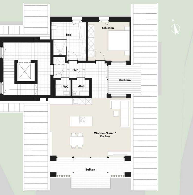 Eingebettet in ein gewachsenes, ruhiges Wohngebiet und Teil eines hochwertigen Neubauprojekts mit zwei Mehrfamilienhäusern, überzeugt die Wohnung 15 im Dachgeschoss von Haus B mit einer durchdachten Raumaufteilung, exklusiver Ausstattung.