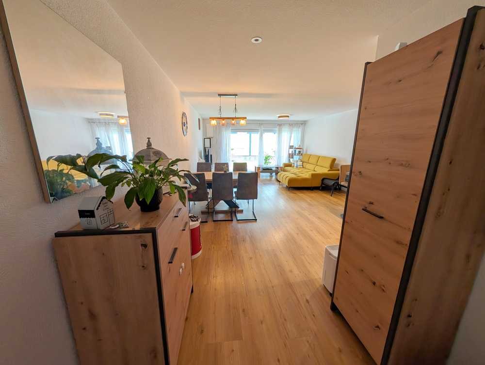 Die im Jahr 2022 erbaute Wohnung überzeugt durch eine durchdachte Raumaufteilung mit insgesamt 3,5 Zimmern und einer Wohnfläche von 99m². Sie verfügt über zwei helle Schlafzimmer. Das größere Schlafzimmer könnte nach Bedarf durch das Einziehen einer Wand in einen zusätzlichen Raum unterteilt werden, da der bisherige Grundriss eine 4,5 Zimmer Wohnung vorsah. Ein modernes Tageslichtbad mit bodentiefer Dusche und ein Gäste-WC sorgen für zusätzlichen Komfort.