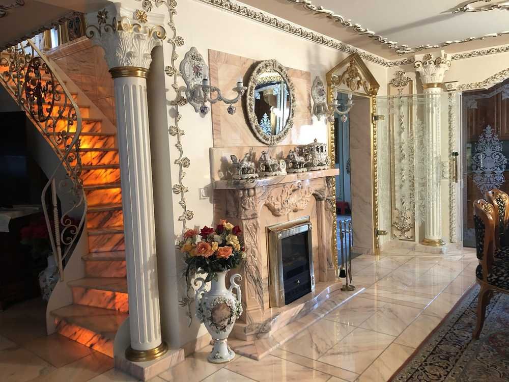 Durch den exklusiven Edelweiß/rosa Marmor Boden in Schmetterling Bilder ausgelegt, und den wunderschönen Stuck (Barock und Rokoko Stil) an den Wänden und Decken, fühlt man ein Hauch von Luxus.