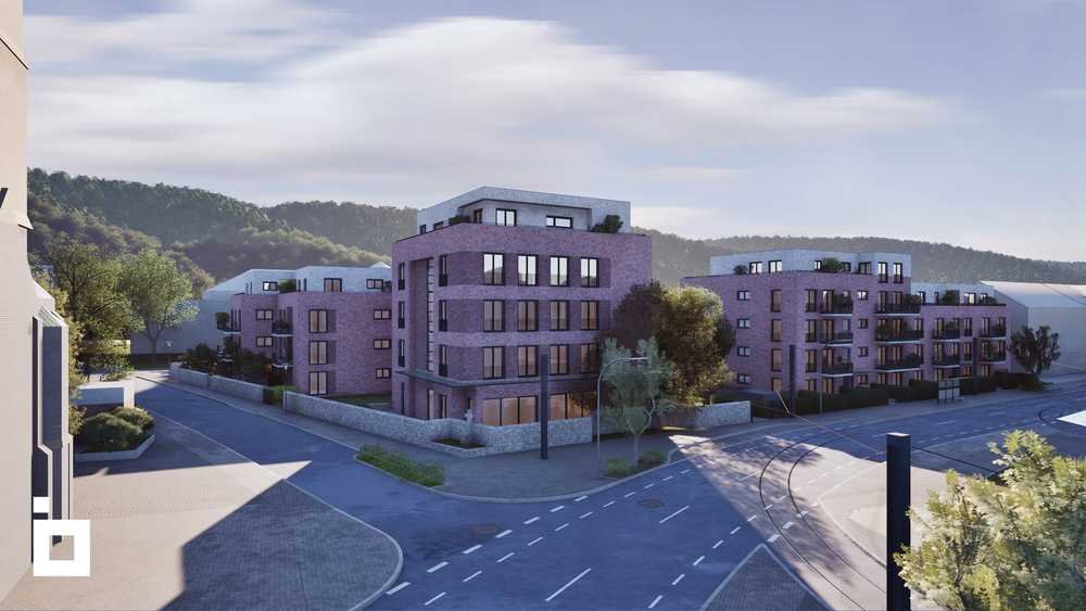 Das Neubau-Ensemble mit seiner kraftvollen Architektur mit markanten Klinkerfassaden umfasst vier Gebäude mit Eigentums-Wohnungen in unterschiedlichen Größen, Gewerbeflächen für Arztpraxen sowie Mikro-Apartments.